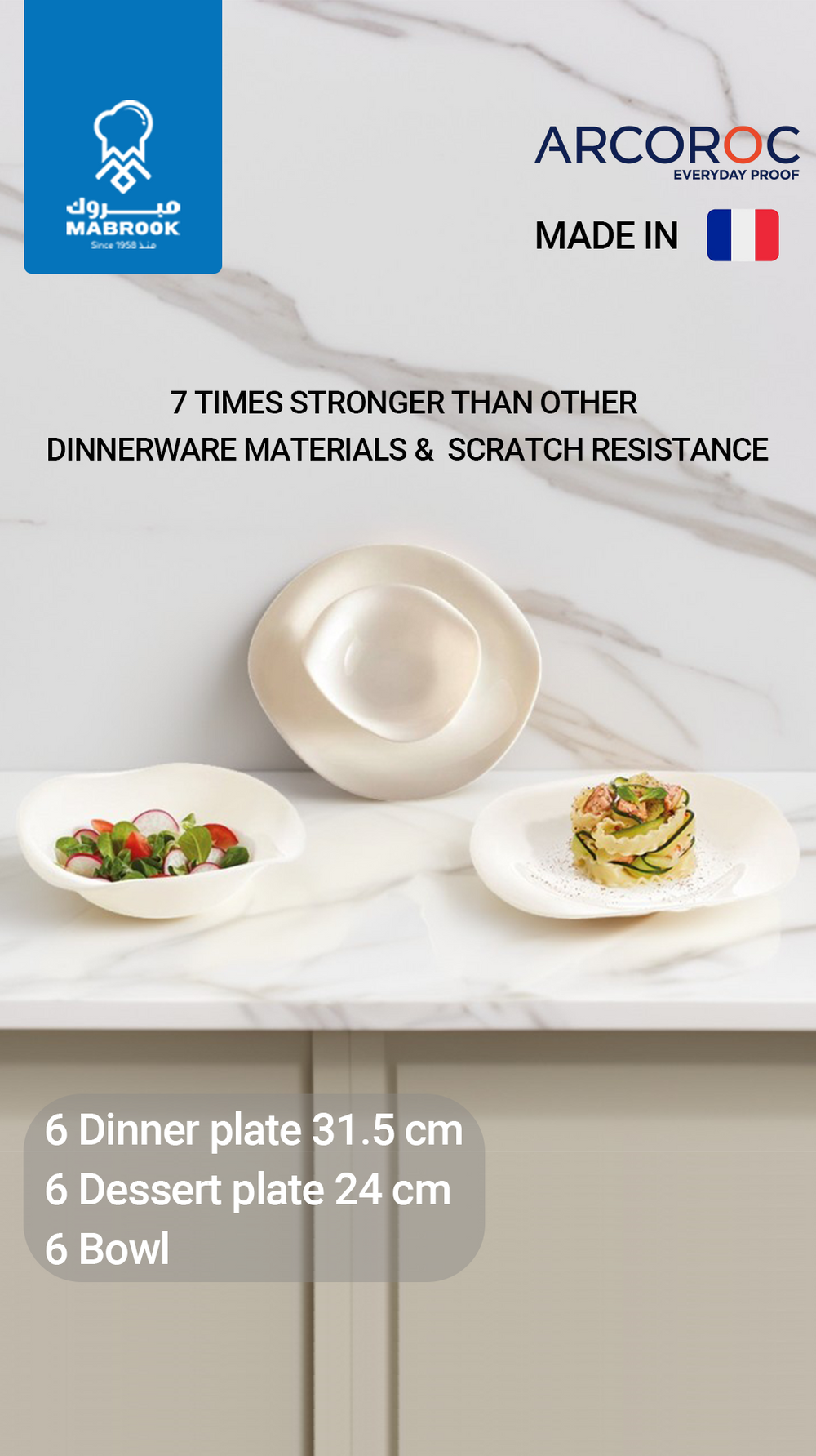 Arc-g4375 6 bone plate + Arc-g2277 6 dinner plate + Arc-g4377 6 round bowl